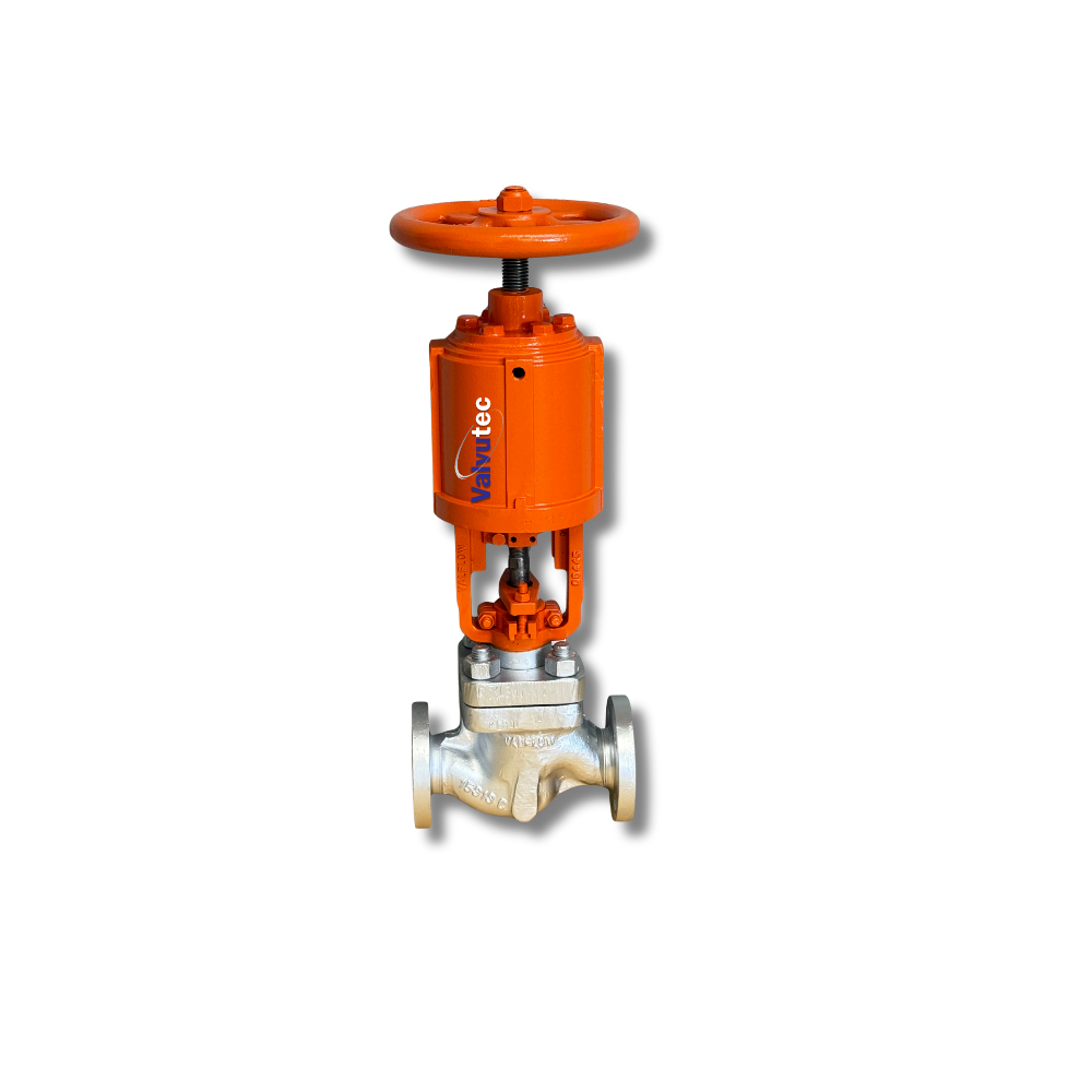 Válvula de Controle Globo com Atuador de Pistão e Acionamento Manual